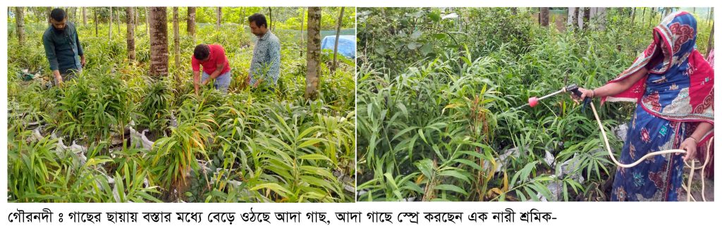 গৌরনদীতে বানিজ্যিক ভাবে বস্তায় আদা চাষ